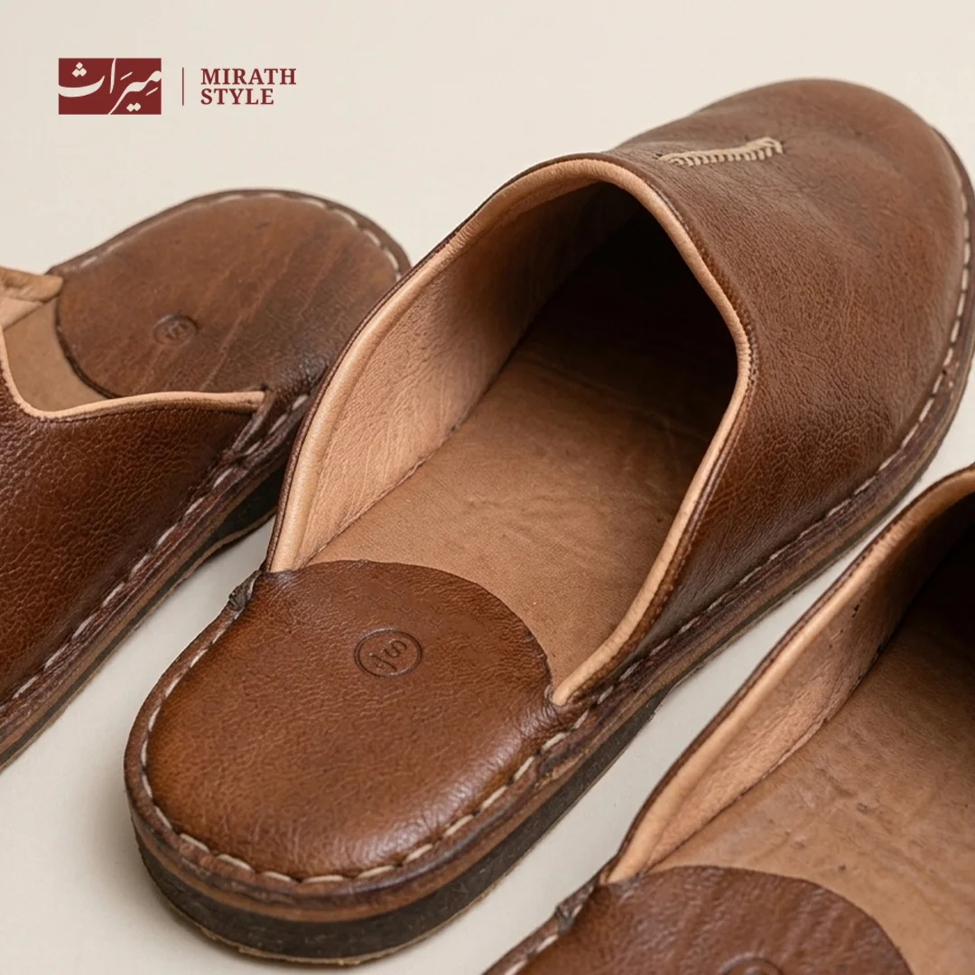 حيت الأصالة ما كتموتش.. فـ عالم كيجري فيه كولشي، اختارينا حنا نوقفو الزمن. فكل تفصيل فهاد الخُف، كاين نفس ديال إبداع كيتجدد، وكاين ريحة جلودنا المغربية اللي شحال ما قدمات، شحال ما زادت زيانت وقدمات ليك الراحة اللي كتستحق.